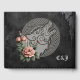 Viking Wolf & Roses. A stylized wolf's head, powerful and majestic. Its gaze is directed to the right, as if pointing the way to a shared future. The wild growl of its mouth embodies the strength and determination of love, while the Celtic knot patterns around it symbolize the eternal connection and unbreakable bond between the two lovers. Soft pink roses with their soft petals and vibrant green leaves flank the wolf in a harmonious way. These floral elements bring a touch of grace and romance to the design