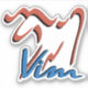 "Vim" written on the GNU Emacs logo.