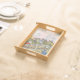 This is a well made, sturdy wooden tray with a flawless black finish and lovely map on the tray surface. It is both vintage & modern at the same time. Looks exactly like the photo; does not disappoint. So nice to find something of quality individually made and not the mass-produced 'shabby chic' merchandise seen in stores. I am so pleased to be able to give this to my college-age niece for her birthday. This can be used as a tray to hold jewelry or toiletries, or hung on the wall as art. The map surface is sealed (it is slightly shiny) so would be moisture resistant. It is well worth the asking price but I was able to apply a sale code as well. Very happy with my purchase. Map is crisp & clear and sealed with a water-resitant finish.