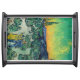 This is a well made, sturdy wooden tray with a flawless black finish and lovely map on the tray surface. It is both vintage & modern at the same time. Looks exactly like the photo; does not disappoint. So nice to find something of quality individually made and not the mass-produced 'shabby chic' merchandise seen in stores. I am so pleased to be able to give this to my college-age niece for her birthday. This can be used as a tray to hold jewelry or toiletries, or hung on the wall as art. The map surface is sealed (it is slightly shiny) so would be moisture resistant. It is well worth the asking price but I was able to apply a sale code as well. Very happy with my purchase. Map is crisp & clear and sealed with a water-resitant finish.