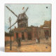 Le Moulin de la Galette (1886) by Vincent van Gogh is a vintage Post Impressionism fine art urban architectural painting. A windmill in the city of Montmartre, a suburb on the northern side of Paris, France. A classic cityscape street scene with people, architecture and buildings in town.
