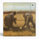 Peasant and Peasant Woman Planting Potatoes (1885) by Vincent van Gogh is a vintage Post Impressionism fine art agricultural painting. Two peasant farmers planting their potato crops in a farm field. A daily life farming and agriculture scene.