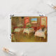 Interior of a Restaurant by Vincent van Gogh is a vintage fine art post impressionism architectural painting featuring an interior view of a cafe with tables with tablecloths and vases with flowers ready for dinner service.