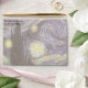 Starry Night (1889) by Vincent van Gogh is a vintage post impressionism fine art landscape nature painting. A view of a city in a valley at night with the clouds swirling, the stars shining and a beautiful golden yellow crescent moon. It was painted during the day from memory and is van Gogh's most famous painting.
