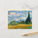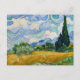 Postcard with a digitally cleaned and enhanced classic post-impressionism landscape by Vincent van Gogh, "A Wheat Field with Cypresses," from 1889.
