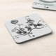 This hard plastic coaster set is shown with a lovely grey tone vine rose print design.