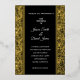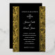 This wedding invitation is shown in a classic layout on a lovely gold foil floral background.