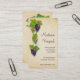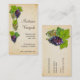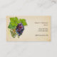 A grapevine with four clusters of wine grapes align along the left side of this business card. The grapevine snakes behind the grapes against a parchment background. A great card for a local vineyard or a sommelier. Available with matching products.