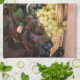 The Vineyard towel features an assortment of grapes, a wine bottle, and a glass of white wine. Classy and very pretty.