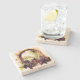 This lovely travertine stone coaster is shown with a watercolor print of a vineyard and grapes.
