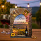 A romantic wedding Thank You card featuring a painting with Roman arch with sunflower, lantern, wine glasses and bottle and grapes overlooking a gorgeous vineyard landscape scene. The inside shows your own favorite wedding photo, framed by an arch and on the right side your texts.