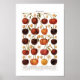 Beautifully saturated in reds, oranges and yellows this vintage illustration shows various types of cherries. Each cherry sits beside its matching cherry pit and several also depict blooms. This antique print is a favorite art piece for kitchen decor. German corresponding names of each variety can be seen at the bottom.