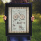 Colorized version of an 1894 Patent illustration for a Carr bicycle. Antique distressed brown and white striped background. A vintage bicycling design that makes a handsome wall art addition.