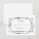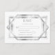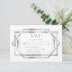 This elegant vintage-inspired wedding RSVP enclosure card features silver gray text on a white background, framed by a geometric vintage art deco design.