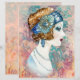 Vintage 1920's Woman over Old Paper with old paper on reverse side