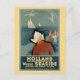 From a 1930s art deco travel poster for Holland (the Netherlands). On the poster: the North Sea, a woman in traditional dress, sailinb oats, a man with a golf club and a woman with a tennis racket.