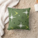 Vintage 1950s Boomerangs Stars Olive Green Throw Pillow