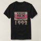 My 11 yo wore adult XL (5’7” 165#). The 8yo is small framed. She wore adult small and tied it in the back. Grandma wore adult large with long sleeve shirt underneath. Tall girl adult medium. Dark haired male adult large. Good quality dark Heather gray, Gildan brand shirt. -it was next up from basic choice and cost about $20 per shirt. Not too thick or thin. Washed and dried well, no major shrinkage. Not see-through. Can wear a bra under it fine. Screen print is just as shown and well done, front and back.