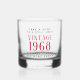 A fun and unique whiskey glass to celebrate his 60th birthday. "Take a Shot, He's Still Hot" and his name are in simple modern typography and "Vintage" and the year he was born are in a retro red font.