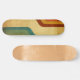 A skateboard in vintage seventies colors, worn style, orange, turquoise blue and aged white. The graphics are simple, ideal for customizing with text.