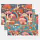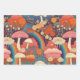 Vintage 70s Retro Hippie Style Mushroom Boho Set 3 Wrapping Paper Sheets