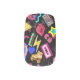 This design is a vibrant and playful pattern filled with 80s and 90s pop culture icons. It features a mix of retro gadgets and accessories, including a cassette tape, a boombox, a rotary phone, a vintage cell phone, a pair of headphones, a game console, sunglasses, and a roller skate. The background is a colorful mix of zigzags, hearts, and stars, creating a fun and dynamic aesthetic. The image evokes a sense of nostalgia and playful energy, reminiscent of a bygone era of vibrant colors and bold designs.