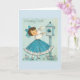 A vintage birthday card image featuring a young lady in a blue dress and hair bow putting a card or letter into a mailbox. The front of the card says "A Birthday Hello" and the message inside the card is: "Wishing you whatever warms your heart and brings you a smile."