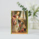 This postcard features a vintage illustration of two children in front of St Nick on Christmas morning.