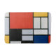 Composition with Large Red Plane, Yellow, Black, Gray, and Blue (1921) by Piet Mondrian is a vintage abstract fine art composition that is asymmetrical with one large dominant block of color, red, which is balanced by the distribution of smaller blocks of yellow, bluish gray, and white. The composition has thick, black horizontal and vertical lines that delineated the outlines of the various rectangles of color.