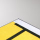 Composition with Large Red Plane, Yellow, Black, Gray, and Blue (1921) by Piet Mondrian is a vintage abstract fine art composition that is asymmetrical with one large dominant block of color, red, which is balanced by the distribution of smaller blocks of yellow, bluish gray, and white. The composition has thick, black horizontal and vertical lines that delineated the outlines of the various rectangles of color.