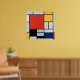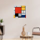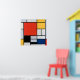 Composition with Large Red Plane, Yellow, Black, Gray, and Blue (1921) by Piet Mondrian is a vintage abstract fine art composition that is asymmetrical with one large dominant block of color, red, which is balanced by the distribution of smaller blocks of yellow, bluish gray, and white. The composition has thick, black horizontal and vertical lines that delineated the outlines of the various rectangles of color.