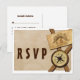Vintage Adventure Wedding Response Postcard featuring a rope border, an antique compass, a dinosaur information plate and a distressed look digital art paper texture background. This cool wedding RSVP postcard is perfect for an archaeology adventure or museum themed wedding. Easy to customize, simply add your wedding details. Click "Customize It" to find more personalization options.