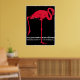 A reproduction of a 1912 vintage German advertising art poster for a zoo in Munich, Germany. It is dominated by a bright pink flamingo on a black background. By Ludwig Hohlwein.