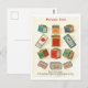 This postcard is a reproduction of a vintage advertisement for packaged teas, such as fancy ceylon and oolong. It reads, "Each occupies a place by itself in the kingdom of tea."