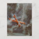 A photograph of a Vintage Playing Card an aeroplane flying through lightening against a very dark sky