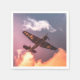 This is a beautiful vintage bomber airplane flying through the sky. The clouds reflect the sun with a lovely orange color. You can see the propeller of the plane as well as the star under the wings. This is just a classic picture your aviator lover or pilot in your life will treasure.