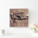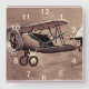 An original painting of a vintage airplane by Anne Ormsby adorns this fun wall clock.