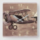 An original painting of a vintage airplane by Anne Ormsby adorns this fun wall clock.