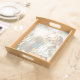 This is a well made, sturdy wooden tray with a flawless black finish and lovely map on the tray surface. It is both vintage & modern at the same time. Looks exactly like the photo; does not disappoint. So nice to find something of quality individually made and not the mass-produced 'shabby chic' merchandise seen in stores. I am so pleased to be able to give this to my college-age niece for her birthday. This can be used as a tray to hold jewelry or toiletries, or hung on the wall as art. The map surface is sealed (it is slightly shiny) so would be moisture resistant. It is well worth the asking price but I was able to apply a sale code as well. Very happy with my purchase. Map is crisp & clear and sealed with a water-resitant finish.