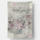 We've designed this beautiful vintage Alice in Wonderland decoupage house flag. Design features a mix of our own hand-drawn original florals and artwork. We've meticulously restored the iconic Alice in Wonderland vintage illustrations by hand sketching them and bring them to life with beautiful watercolor undertones. Design features original hand-drawn vintage flowers, butterflies, vintage keys, and vintage crown. Vintage handwritten notes are beautifully incorporated into the collage. Customize with your name. All elements except for the vintage notes are hand-drawn original artwork by Moodthology Paper.