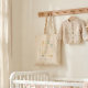 This cute bag features a vintage alphabet design in pastel color shades of blush, green, yellow, and gold. Personalize it with a name. Great gift idea!