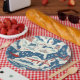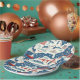 A beautifully crafted vintage-inspired pattern featuring iconic American landmarks and symbols. With the Statue of Liberty, USA map, mountain ranges, and Brooklyn bridge all set against a rustic blue background, this paper plate celebrates the spirit of the United States through timeless and recognizable imagery. Perfect for adding a nostalgic and patriotic flair during national holidays or year-round.