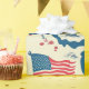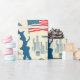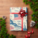 A beautifully crafted vintage-inspired pattern featuring iconic American landmarks and symbols. With the Statue of Liberty, USA map, mountain ranges, and USA flags all set against a rustic background, this wrapping paper celebrates the spirit of the United States through timeless and recognizable imagery. Perfect for adding a nostalgic and patriotic flair during national holidays or year-round.