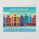 Classic Vintage Amsterdam Netherlands Waterfront & Boat Postcard. This print features an illustrated view of an Amsterdam cityscape from the water. Remarkable design, stunningly perfect.
