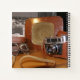 Vintage analog camera in leather brown case notebook