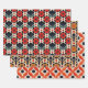 Red, Orange and Black Vintage and Folk Pattern Wrapping Paper Sheets Set