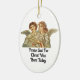 Sweet, vintage picture of two angels singing, is featured on this oval ceramic ornament for Christmas. With message on one side, "Praise God For Christ Was Born Today" and the other side reads, "May Christ Fill Your Heart With Love And Peace". A wonderful way to decorate your Christmas tree or give as a gift too!