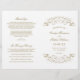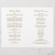Timeless vintage scrollwork frames your ceremony details in rich antique gold against a clean white background. The front cover features elegant flourish accents surrounding your names and wedding date, with a coordinating scrollwork backing. Inside pages are fully customizable for your bridal party, ceremony order, and a personal thank you message. Programs are printed on text-weight paper and arrive flat, requiring a simple center fold.