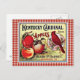 Vintage Apple and Cardinal Ad Postcard on red gingham background