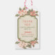 This beautiful apple blossom tag has a classic vintage feel. The tag features apple blossoms on the top and bottom of the decorative damask label. In the center is decorative red text that reads "Thank You for Celebrating with Us". You can customize this tag with a name and date. The back of the tag has a coordinating green border with a white background for you to add a personal note.
